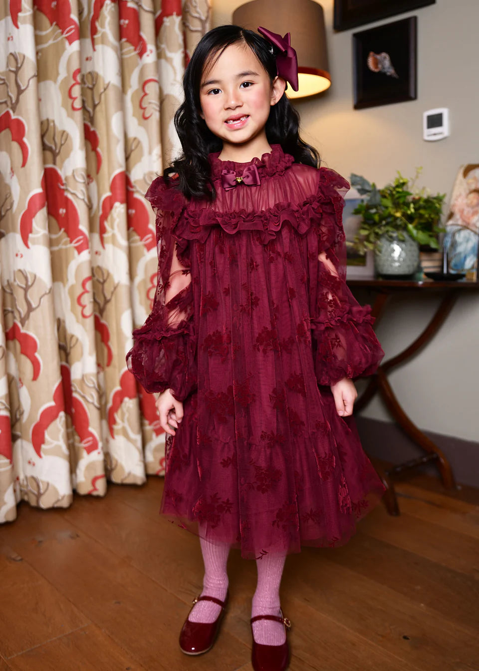 Romantico abito voluminoso in tulle floreale
